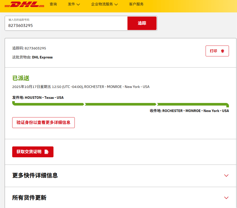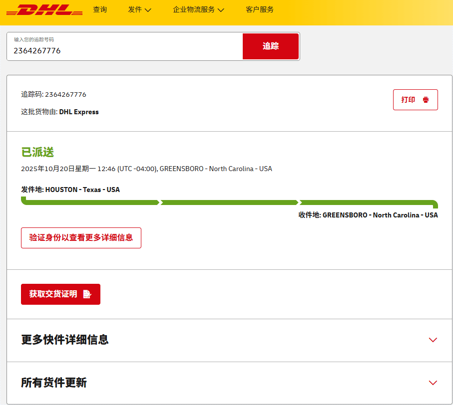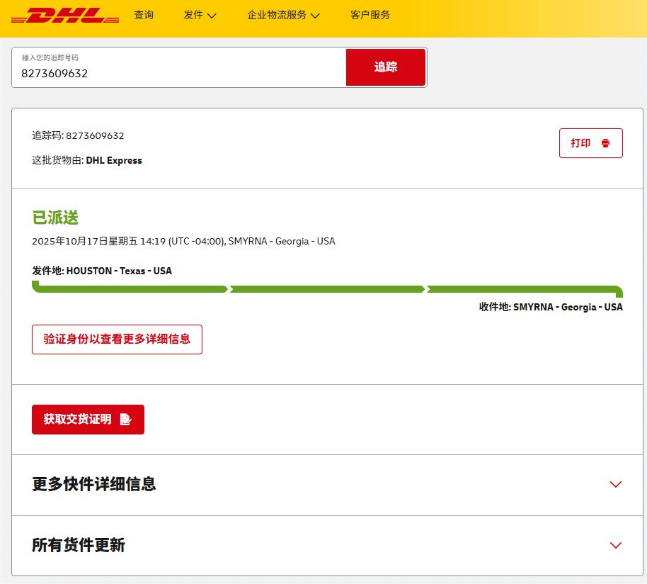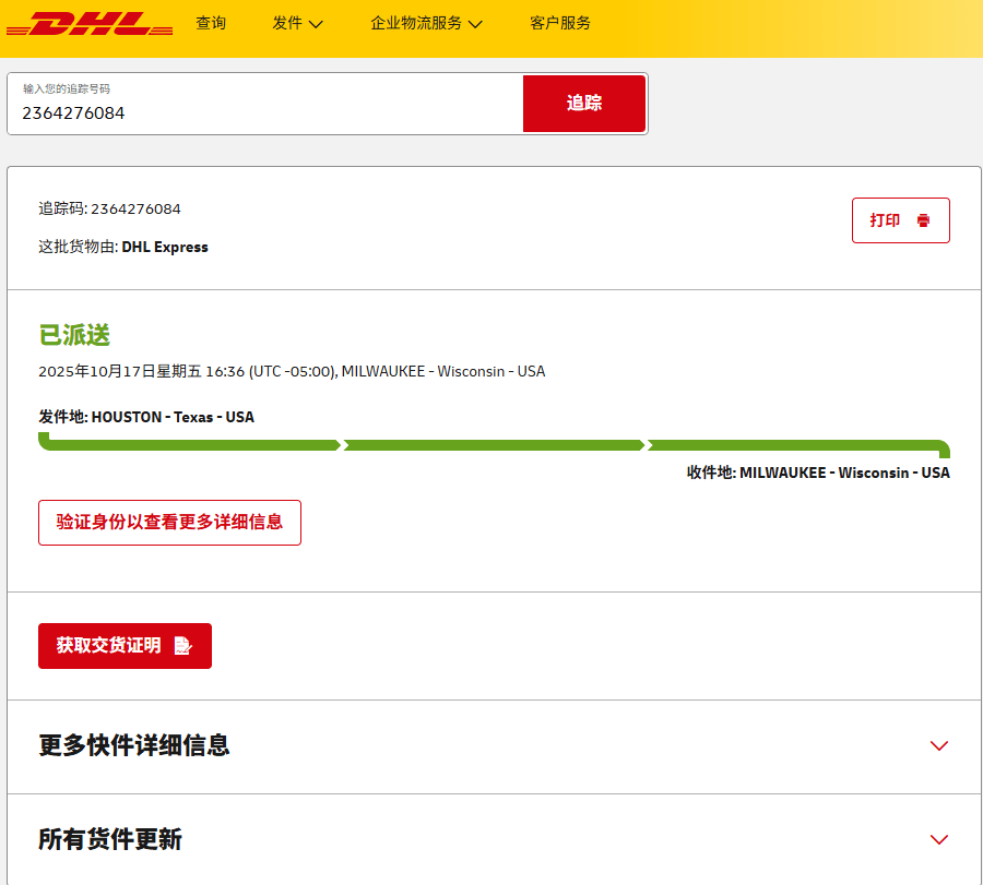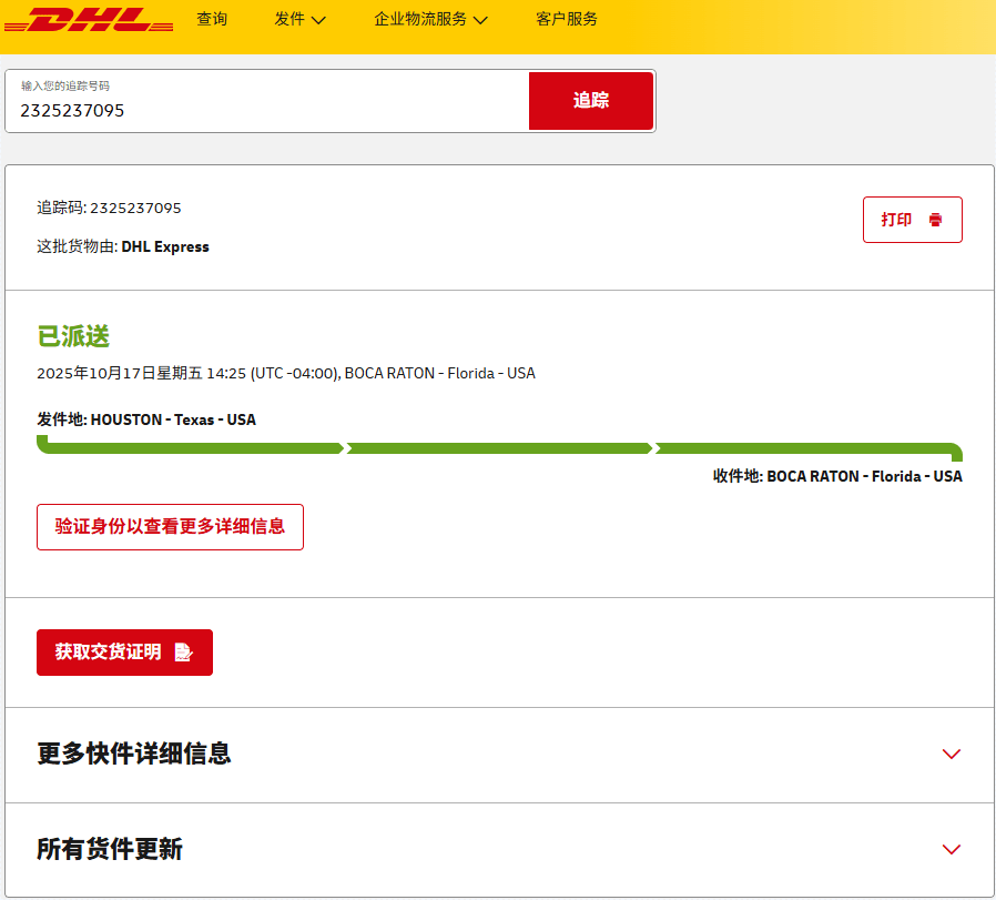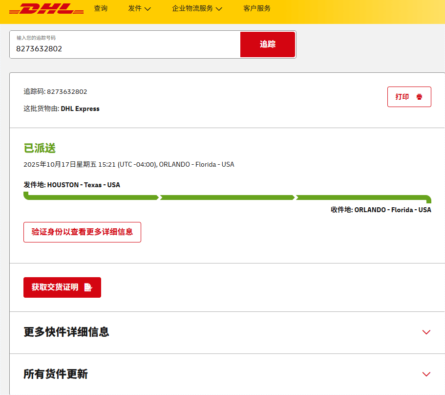美国近期签收的部分快递